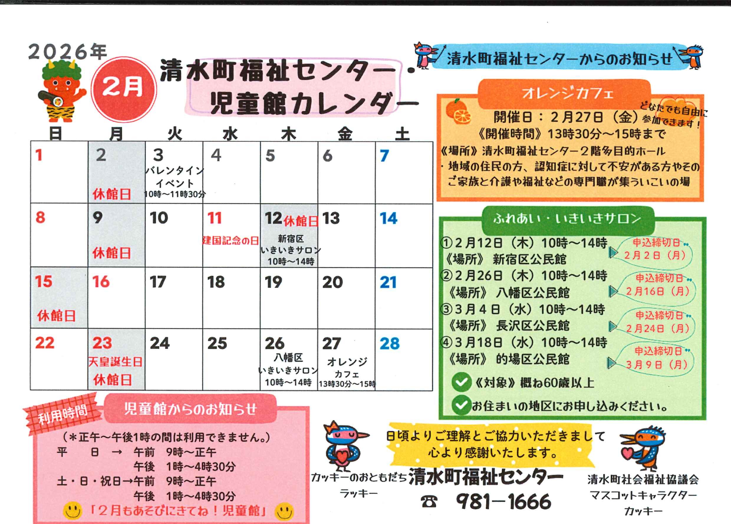 清水町福祉センター・児童館カレンダー